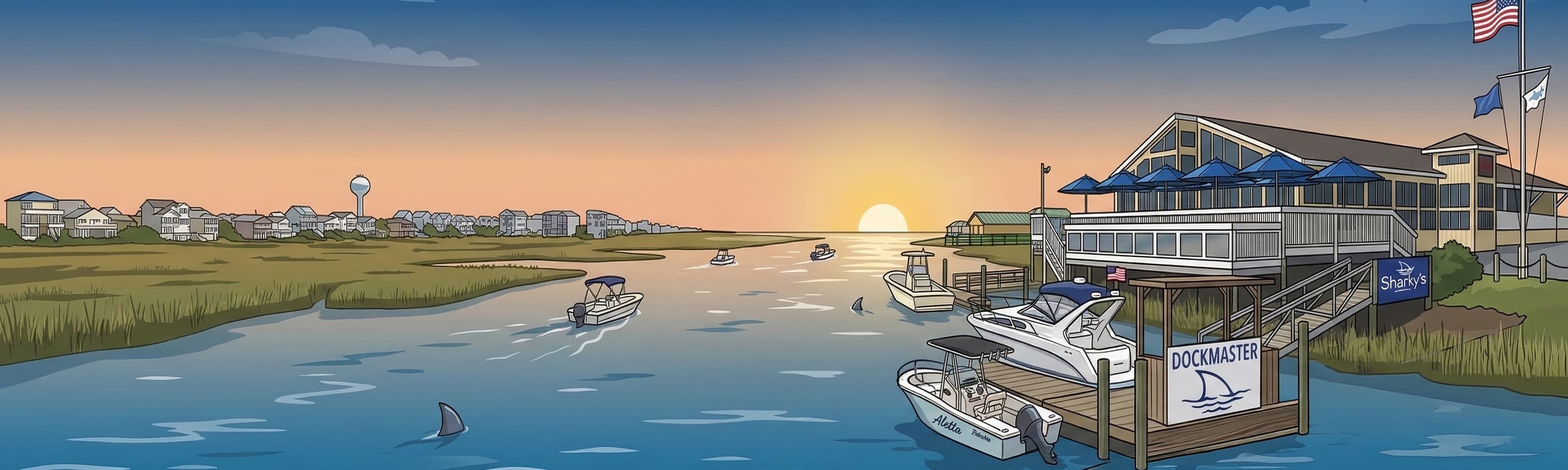 Your virtual seat on the Sharky's deck — live cam, island tunes, and everything happening at the waterfront.